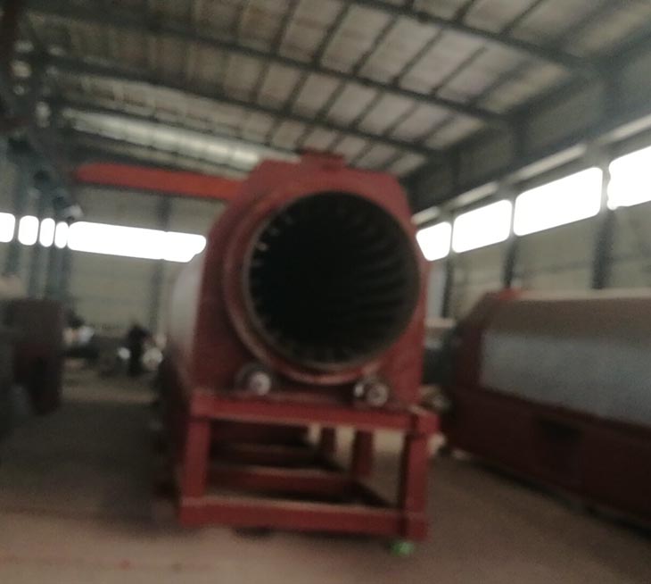 我們解決其技術(shù)問(wèn)題所采用的技術(shù)方案是:一種新型環(huán)保節(jié)能熱風(fēng)炒爐,由電源供電,包括第一燃燒室、第二燃燒室、熱風(fēng)炒爐滾筒、存料機(jī)、自動(dòng)喂料器、出料機(jī)、引風(fēng)機(jī)和排潮風(fēng)機(jī),所述熱風(fēng)炒爐滾筒的入口端通過(guò)自動(dòng)喂料器與所述存料斗連通,所述熱風(fēng)炒爐滾筒的入口端還通過(guò)風(fēng)道與所述排潮風(fēng)機(jī)連通,所述熱風(fēng)炒爐滾筒的出口端與出料機(jī)連通,所述第一燃燒室和第二燃燒室通過(guò)風(fēng)道與引風(fēng)機(jī)連通,所述第一燃燒室和第二燃燒室分別位于所述熱風(fēng)炒爐滾筒的下方,所述熱風(fēng)炒爐滾筒軸心線與水平面形成2°到8°的夾角,所述第一燃燒器和第二燃燒器安裝位置在相應(yīng)燃燒室的前端或者相應(yīng)燃燒室的兩個(gè)側(cè)面。我們?cè)O(shè)備取消了原熱風(fēng)炒爐所配套的單獨(dú)熱風(fēng)爐、彎段風(fēng)道或直段風(fēng)道;在炒爐滾筒下方設(shè)計(jì)安裝兩份熱風(fēng)燃燒室,用燃燒器產(chǎn)生的熱風(fēng)直接對(duì)滾筒進(jìn)行加熱,最大限度地縮減了炒爐散熱環(huán)節(jié)和面積,從而實(shí)現(xiàn)炒爐連段式加熱。與現(xiàn)有設(shè)備相比,我們公司設(shè)備充分利用了熱風(fēng)釋放的熱量,減少了熱量損失,單噸油料或糧食加工消耗添人氣甚至能降低到25nm3,降低了17%,節(jié)能降耗效果非常明顯,得到了客戶的一致好評(píng)。與現(xiàn)有設(shè)備相比,同等日加工量,所配兩臺(tái)燃燒器合計(jì)功率比現(xiàn)有設(shè)備燃燒器功率下降20%-30%,熱風(fēng)設(shè)定溫度有750-800℃下降到400-500℃,明顯延長(zhǎng)了炒爐的使用壽命。第一燃燒室和第二燃燒室的功能各不相同,工作溫度也不一致,第一燃燒室和第二燃燒室能夠?qū)崿F(xiàn)分段加熱溫度控制,更加靈活與合理,安全可靠,便于操作與控制。